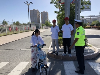 民警和志愿者们用微笑和爱心维护着安全、有序、文明、畅通的道路交通环境,坚持做好文明交通志愿者劝导活动,提升交通参与者的安全意识、文明意识,营造交通安全人人知晓、交通安全人人遵守的社会化氛围。