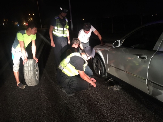 6月16日23时许,安晨路派出所巡警在巡逻过程中,行至安庆大道与园中苑路交汇处,遇四名维吾尔族群众招手呼救。于是停车查看,经了解阿某等人因着急回家过节,路过道路维修路段,由于车速太快,导致轮胎爆胎,几个年轻人又不会维修,正在抓耳挠腮之际,遇到路过巡警便请求帮忙。