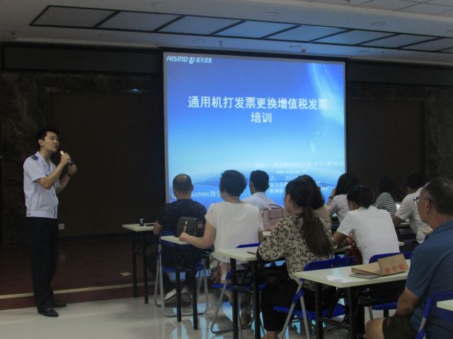 2017年7月26日, 开发区国税局在人才大厦一楼组织举行了增值税发票培训会,邀请了国税局客户经理左军建,就如何熟练通过增值税发票数据应用系统,利用相关工具查找风险点进行讲解辅导,参与培训人员50多人次。
