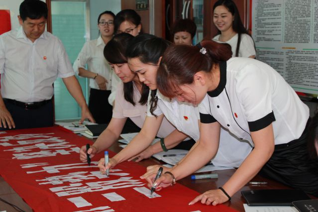 全州财政系统党员干部代表“发声亮剑”表态完毕后,开发区财政局全体干部与全州财政系统同步开展在以《坚决打击“三股势力” 坚决反对“两面人”》为内容的宣传横幅联合签名活动,表明严守政治纪律政治规矩,用忠诚和担当表坚定决心。