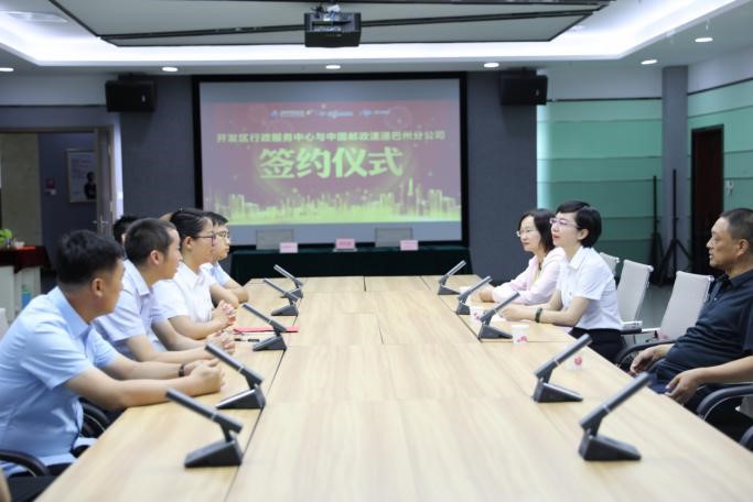 为提升服务效率,优化营商环境,提高办事效率,优化政府服务,贯彻落实《库尔勒经济技术开发区“最多跑一次”改革试点实施方案》的要求,7月5日上午,开发区行政服务中心与中国邮政速递巴州分公司合作,签订快递送达协议,开启了政务服务审批结果快递送达服务,这是开发区落实“互联网+政务服务”、推行企业和群众办事“最多跑一次”的一项新举施。