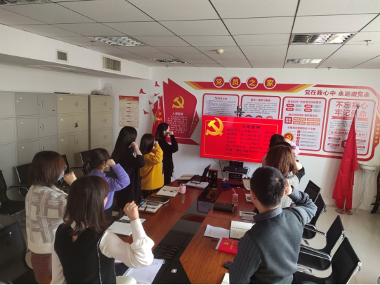 在全体党员齐唱国歌和重温入党誓词,集体上缴2月份党费后,党支部副书记李霞带领全体干部围绕“学习强我,学习强国,践行使命”再一次深入学习了十九届五中全会精神、第三次中央新疆工作座谈会精神及2021年新疆维吾尔自治区政府工作报告精神内涵,同时强调了“学习强国”理论学习要常态化,要求大家从本职岗位出发,牢记肩上的责任与使命。