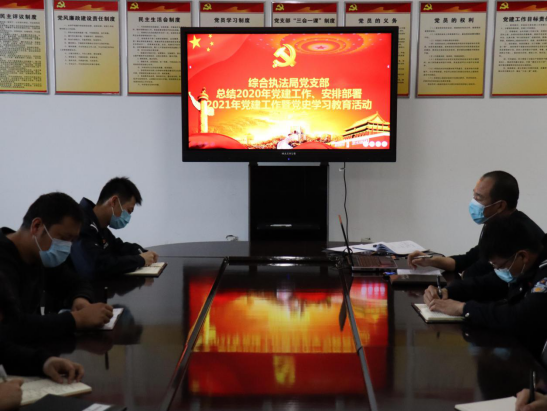 2021年2月25日,开发区综合执法局党支部组织召开了党建工作会议,对2020年全年党建工作进行了总结,并对2021年党建工作进行了部署安排,同时就党史学习教育活动进行动员。
